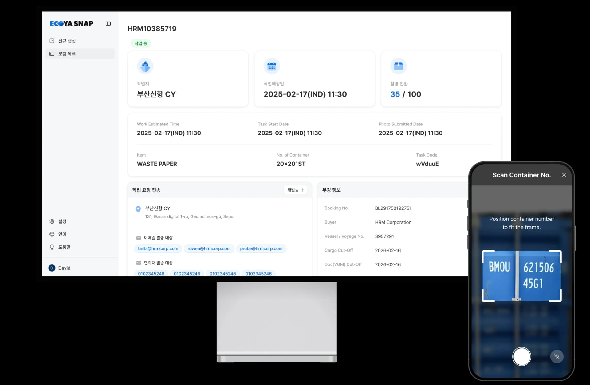사무실로 돌아온 담당자는 그 사진을 다시 꺼내 정리한다. 파일명을 붙이고, 컨테이너 번호를 수기 입력하고, 폴더에 분류한다. 현장에서 한 번, 사무실에서 한 번. 같은 사진이 두 번 처리된다. 그래도 완전하지 않다. 작업 단계별로 연결된 정보가 없고, 위치 정보가 없고, 부킹 번호(Booking No.·선박 선적 예약 번호)와 연결되지 않는다.