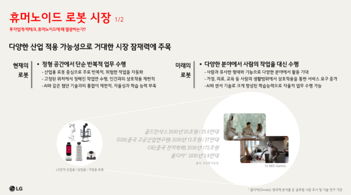 골드만삭스, 중국 고공산업연구원, 영국 옴디아... 세계 유수의 시장조사 기관들이 모두 휴머노이드 시장에 주목하고 있습니다.