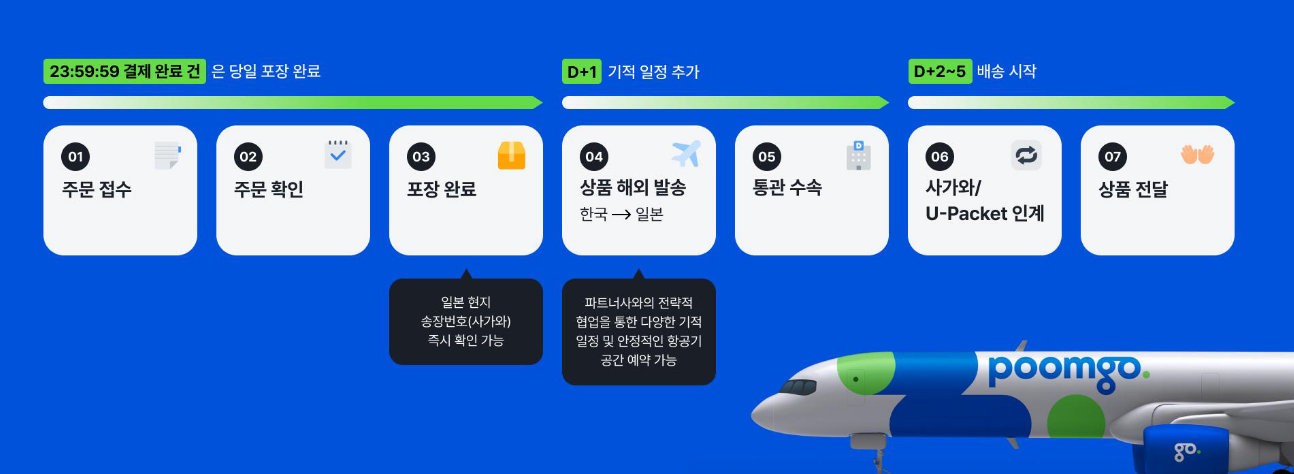 특히 글로벌 진출은 주목할 만합니다. 품고는 한국의 빠른 배송 경쟁력을 일본 시장에 이식했습니다. 큐텐재팬과 협력하여 도착보장 서비스를 론칭했으며, 일본 D+4 도착보장을 국내 최초로 구현했습니다.